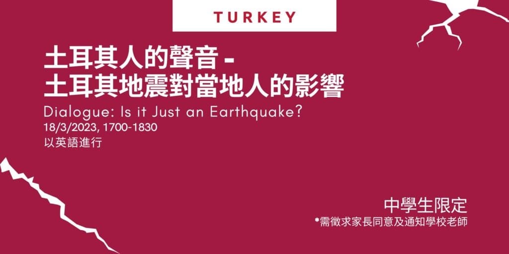 Our Turkish guests will share about the reality of living in Turkey, the possible reasons behind the high death rate after the recent earthquake and how this disaster may impact future experiences for people living in Turkey. Our guests will raise various concerns that the Turkish community has and share how Hong Kong people can provide help to their families and friends back at home.